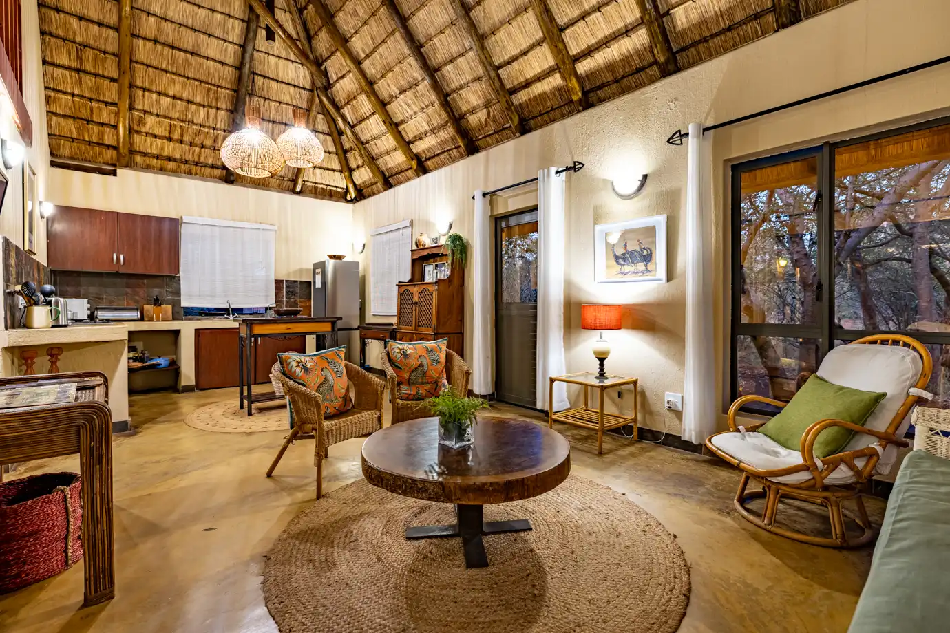 Hoedspruit Bush Cottage offers everything you need for a relaxed, no-fuss stay in the bushveld. The fully equipped open-plan kitchen includes a gas hob, microwave, fridge-freezer, toaster, and all the cookware you need to prepare your favourite meals.